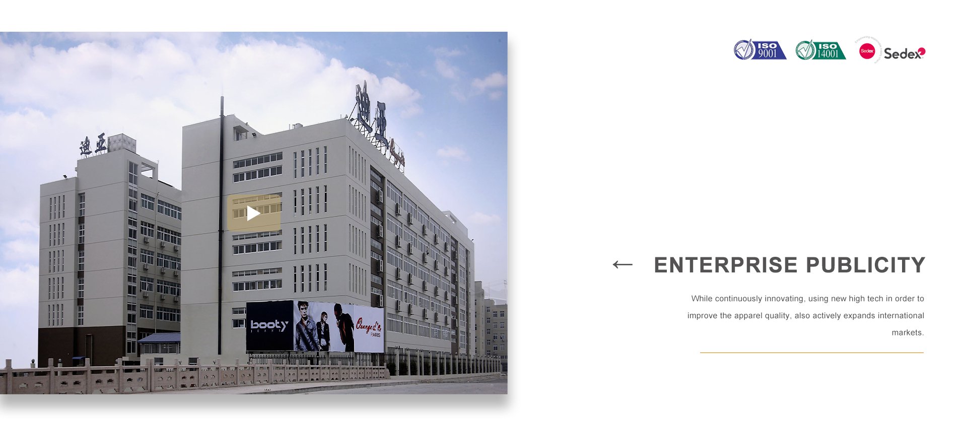 浙江迪亞服飾有限公司于1998年在世界時尚品牌之都——法國巴黎二區(qū)應(yīng)運而生。同年,在浙江省甌海經(jīng)濟(jì)開發(fā)區(qū)東方南路28號設(shè)立服裝制造工廠。公司集服裝設(shè)計、生產(chǎn)、營銷、品牌于一體,在不斷創(chuàng)新、采用高新技術(shù)提高服飾質(zhì)量的同時,積極拓展國際市場,海外營銷部長期與LV集團(tuán)旗下的MAJE、SOEUR、BALIBARIS等國際著名品牌保持非常緊密的合作關(guān)系。