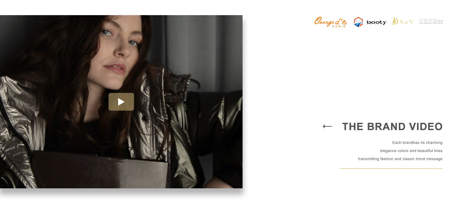 品牌建設(shè)是公司堅持不懈的追求,我們每年都會積極參加國內(nèi)外舉辦的各大服裝展銷會。憑借著良好的質(zhì)量與信譽,市場占有率在逐漸擴(kuò)大,產(chǎn)品遠(yuǎn)銷歐洲、美洲、亞洲等國。公司以生產(chǎn)棉衣、羽絨服、派克、大衣、夾克、運動休閑服飾等為主,旗下主打品牌有 ORANGE D’OR 、CLAIRVAL、BOOTY JEANS 、S&V和SASAEC,各品牌服飾均以典雅的色彩、優(yōu)美的線條、卓越的魅力吸引著都市麗人,將時尚、經(jīng)典的潮流信息予以淋漓盡致的演繹。